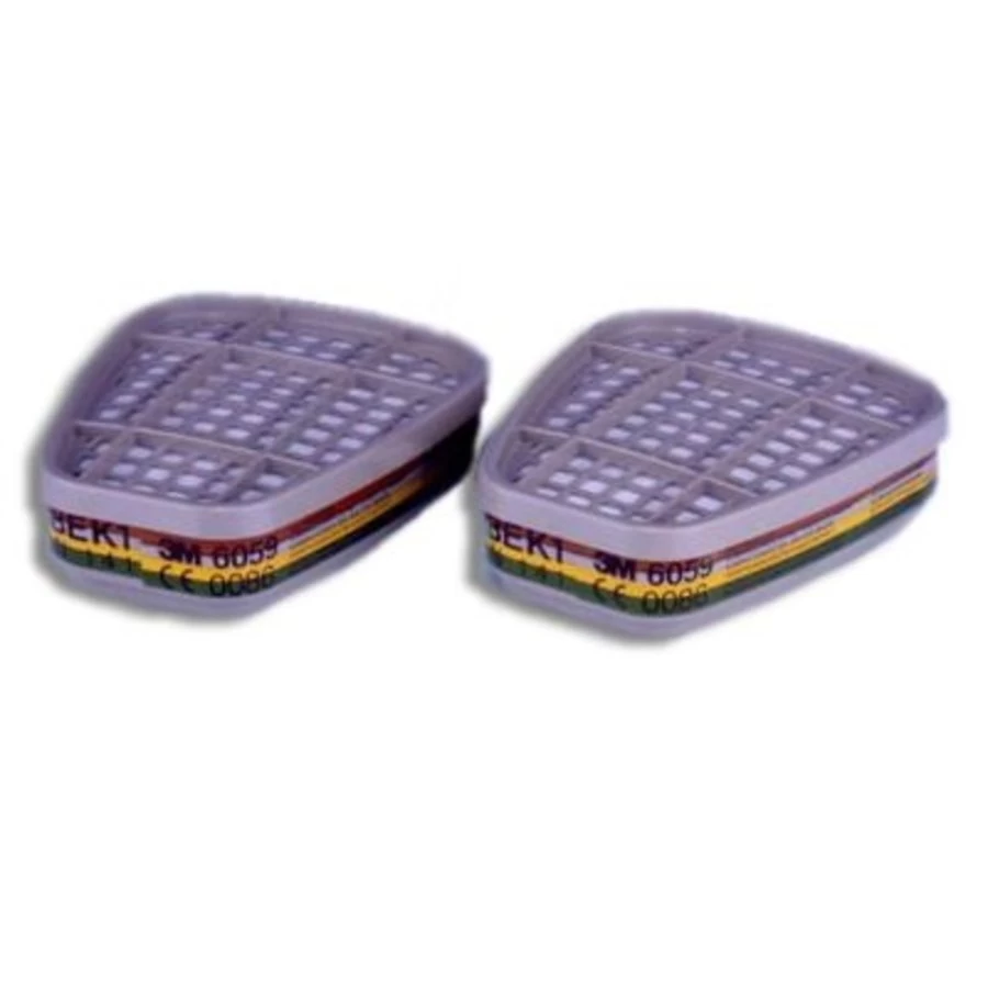 De 3M™ 6059 ABEK1 filters beschermen tegen zure gassen, ammonia, anorganische gassen en organische dampen (kookpunt >65 graden) .