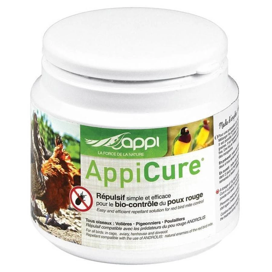 AppiCure zorgt ervoor dat het bloed van uw kippen of vogels minder aantrekkelijk wordt voor bloedluis. Meng het eenvoudig door het voer en de dieren zijn van binnenuit beschermt. Omdat de bloedluis het bloed van uw dier niet meer lust zal deze op zoek gaan naar ander eten en hierdoor meer bewegen. Daarom is de combinatie AppiCure met roofmijten een zeer sterke combinatie, de kans op een ontmoeting met een roofmijt alleen maar toenemen.