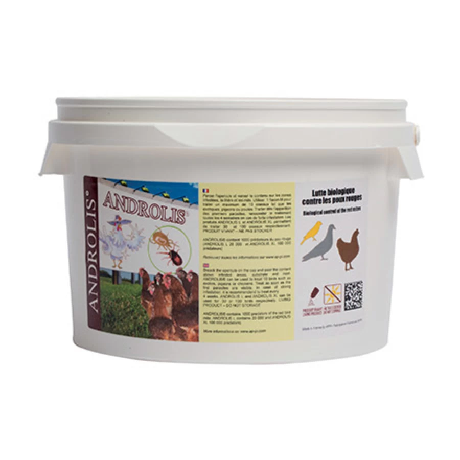Androlis XL: bevat ca. 50.000 roofmijten en is bedoeld om een ruimte van maximaal 10 vierkante meter te behandelen tegen bloedmijten. Bij een preventieve behandeling kan hiermee ca. 20 vierkante meter worden behandeld.