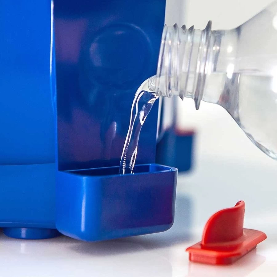 De luchtvochtigheid en warmte wordt zo verspreid door de ventilator bovenin de machine dat dit het uitkomstpercentage ten goede komt. Het water voor het in stand houden van de luchtvochtigheid vult u bij aan de zijkant. Dit gebeurd niet automatisch.