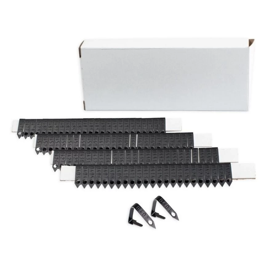 Aluminium vleugmerken uitermate geschikt om al op jonge leeftijd de kuikens uit elkaar te kunnen houden. De vleugmerken zijn genummerd.