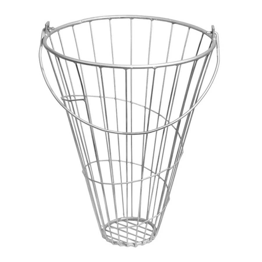 De handige voederkorf gemaakt van verzinkt ijzer en met houder voor het voeren van uw kippen. Deze handige voeder is stevig en makkelijk te gebruiken.