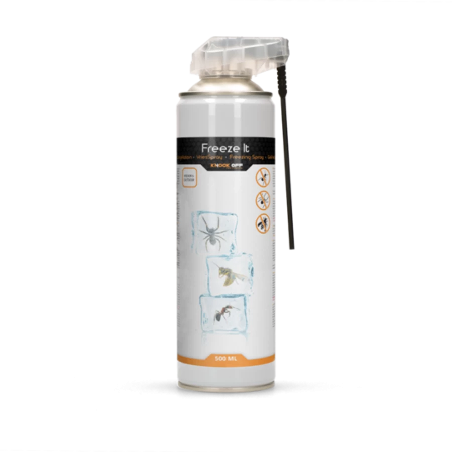 Knock Off Freeze It Vriesspray voor het doeltreffend bevriezen van kruipende insecten (zoals wantsen, kakkerlakken, mieren, spinnen, duizendpoten en bloedluizen) en de meeste vliegende insecten (muggen, vliegen, motten, wespen). Werkt ook tegen de eieren van bloedmijten!