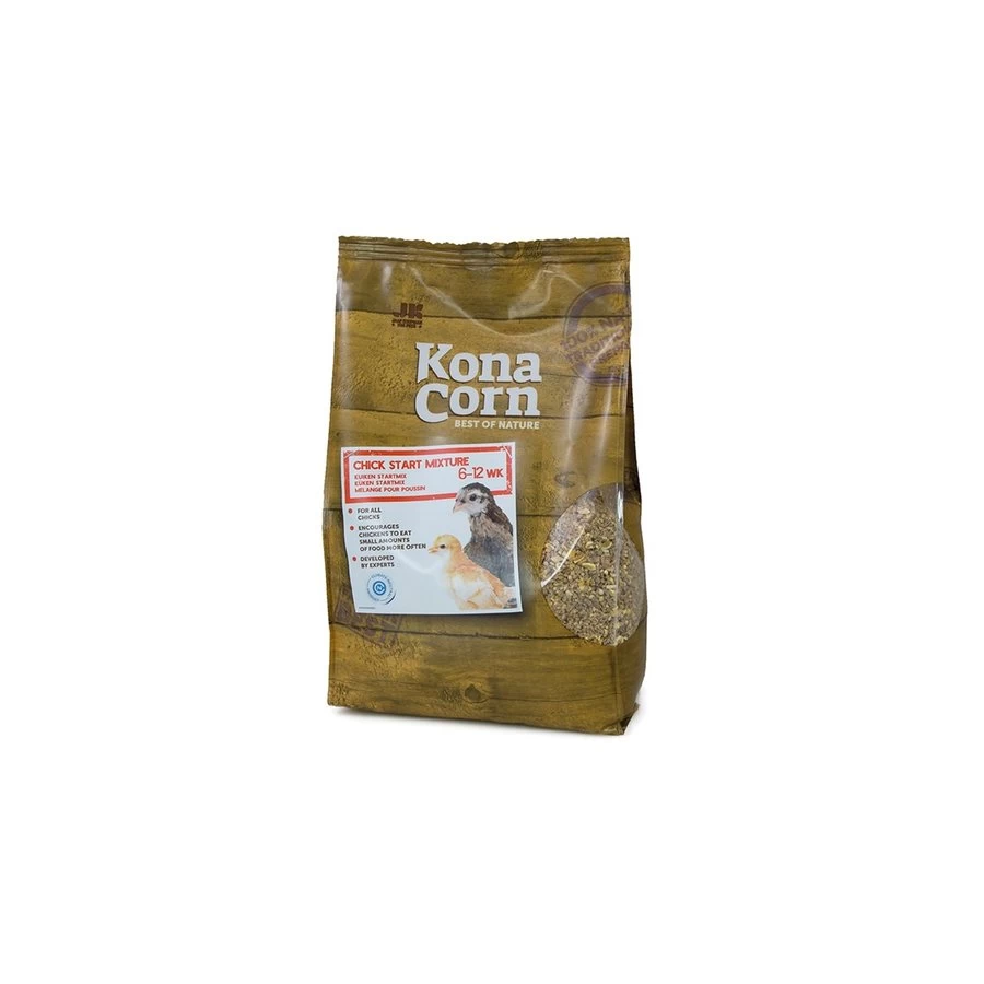KonaCorn kuikenstartmix 6-12 weken is een uitgebalanceerde voer voor de verdere levenfase van het pasgeboren kuiken. Het bestaat uit 100% natuurlijke ingrediënten en is een combinatie van kuikenmeel en kuikenzaad. Ook te gebruiken bij kuikens van fazantachtigen, kwartels, patrijzen, pauwen en andere sierhoenders.