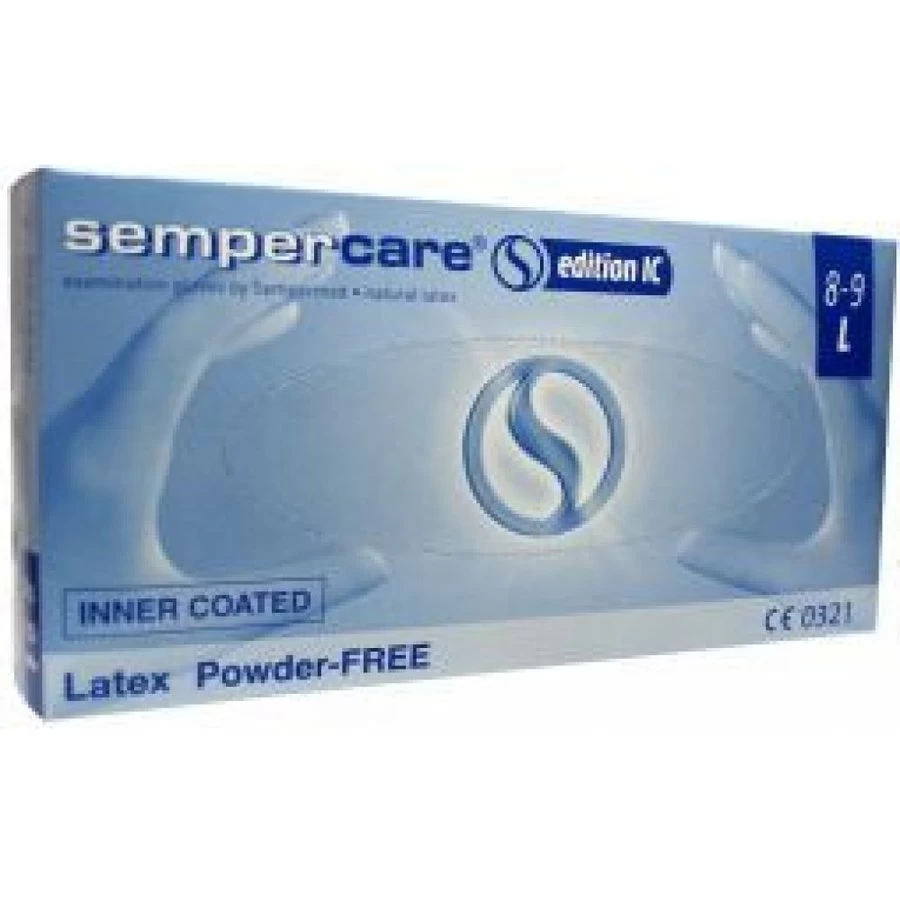 Latex poedervrije en huidvriendelijke handschoenen van Sempercare voor eenmalig gebruik.