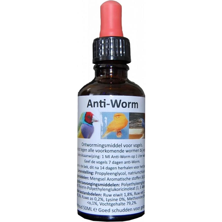 Met Anti-Worm van Sjoerd Zwart ontwormt u uw vogels op eenvoudige wijze. Het helpt bij de meest voorkomende wormen bij vogels en pluimvee. U kunt 1 ml door 1 liter water doen en deze oplossing 7 dagen geven. U kunt ook 1 druppel in de bek geven. Dit na 14 dagen herhalen voor het beste resultaat.